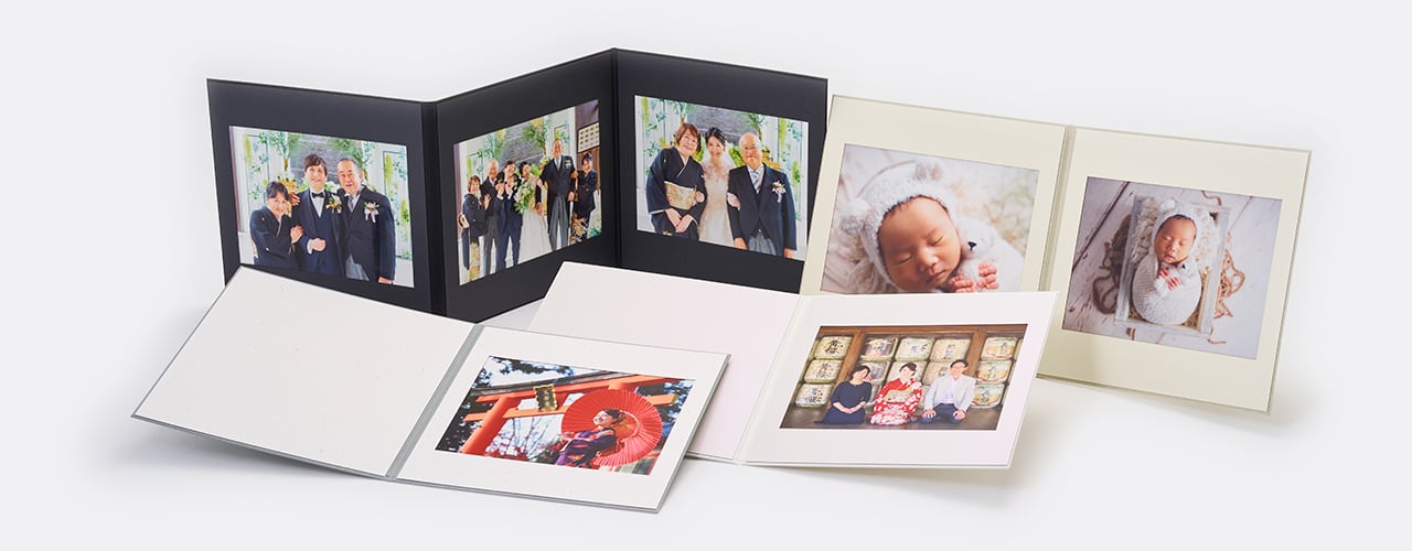 縦、横写真を1枚から3枚で構成する正方形の台紙です。